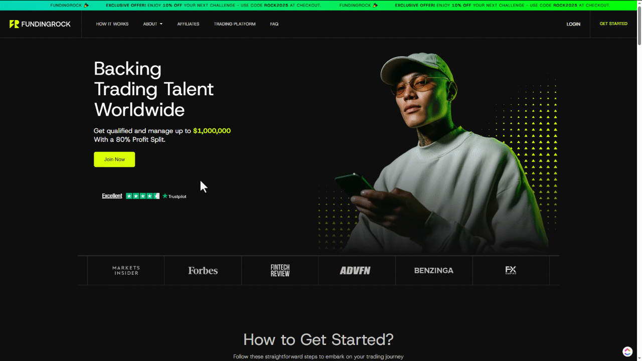 That said, there are many prop firms available but we recommend you check FundingRock. The process is very straightforward: create an account, choose a challenge that fits your style, and start trading.