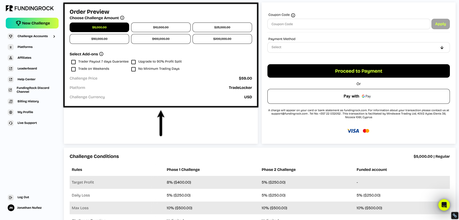 That’s it. That is the complete process to start trading with FundingRock, so what are you waiting for? Create your account right now to access your challenge account.